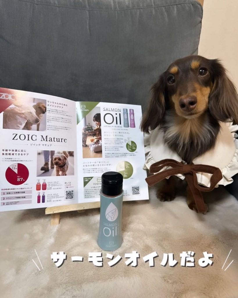 サーモンオイルは初めてだったそうですが、食いつきは良好だったそうです。飼い主さまも実際に試食いただき、濃厚な鮭の風味で驚かれたようです。