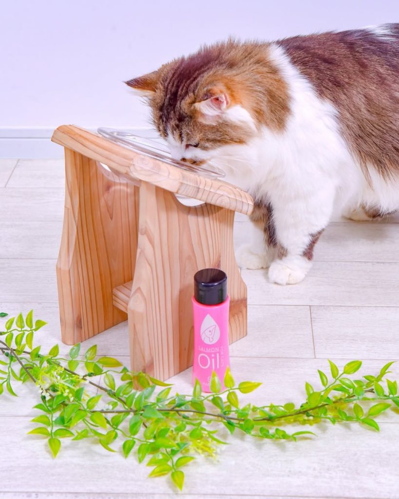 フードにサーモンオイルをかけて食事を楽しむ様子をご紹介いただいています。実は、ごはんにサーモンオイルをかけてるお友達がいらっしゃり、モニターになる前から注目していただいていたようです。