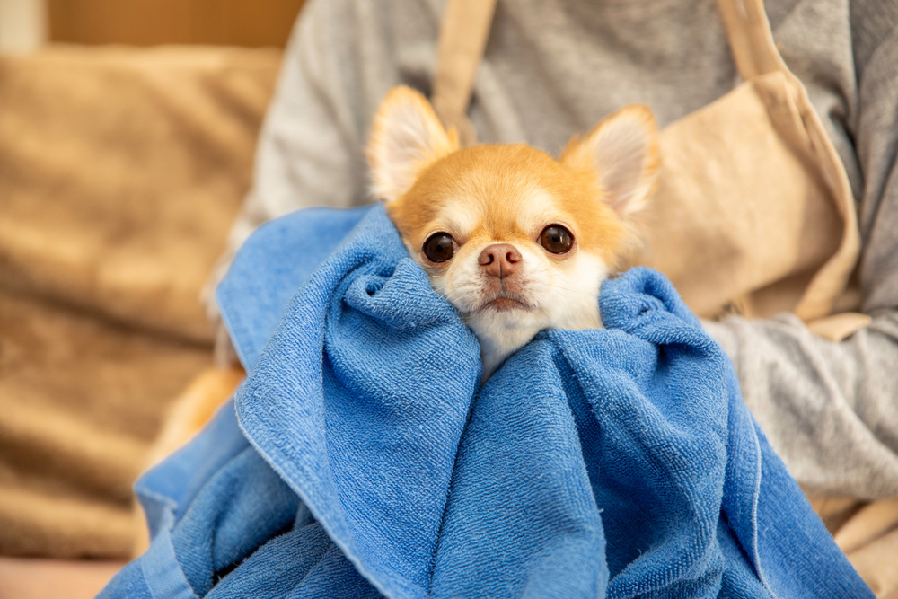 ドライヤーをかける際は、被毛を分けながら乾かします。この工程は、全身を最も細かく観察できる時間でもあります。小さな皮膚の変化や、部分的な違和感に気づくことがあります。